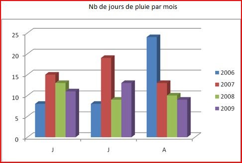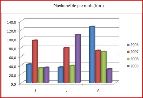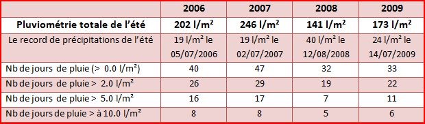 - un mois de juillet bien arrosé : il est tombé plus de 100 mm d’eau en 13 jours de pluie