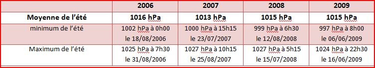 La pression moyenne est de 1015 hPa. Les écarts ne sont pas significatifs.