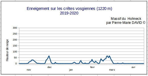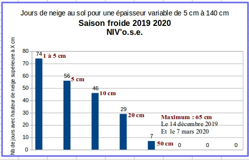 Ces documents montrent la courbe d'enneigement et le nombre de jours avec 50 cm ou 20 cm etc.. au sol durant l’hiver 2019/2020.