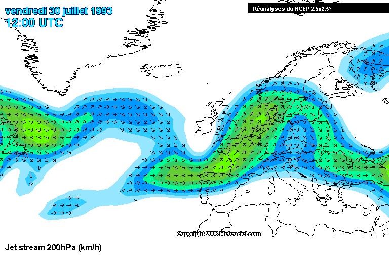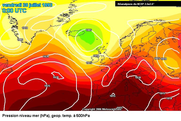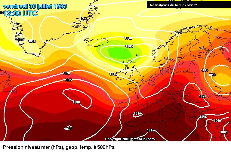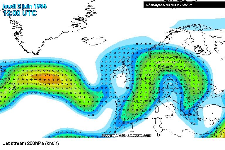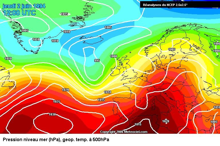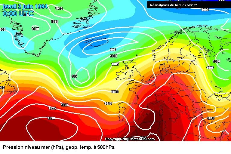 Situation à 500hpa du 2 juin 1994 à minuit :