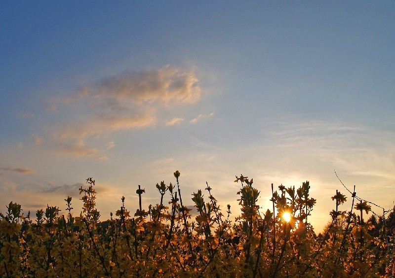 Du soleil dans les forsythias à Wimmenau Parc Vosges du Nord le 19.04.09 (20h00) par Jean Beck