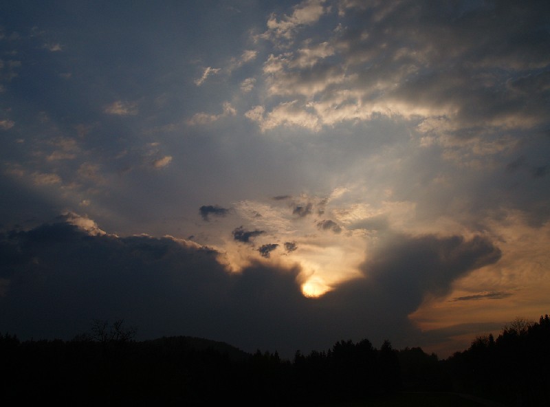 Un orage se couche sur le soleil couchant à Wimmenau Parc Vosges du Nord le 13.04.09 (19h30) par Jean Beck