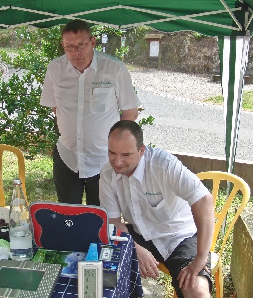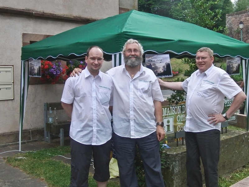 Le 4 juillet une équipe réduite composée de René, Daniel et Jean ont monté le stand flambant neuf de CLIMA, juste devant l’entrée de l’Office du Tourisme de La petite Pierre pour une journée réservée aux artistes et au savoir-faire. Tous trois, en grande tenue « service météo » de CLIMA, ont pu faire découvrir les facettes de nos activités, notre site www.clima.fr, le suivi en live des masses nuageuses et du radar en direct sur l’Ibook de Jean ; les questions fusaient souvent parmi nos visiteurs un peu abattus par le peu de stands présents sur la place….. les orages de la veille et les pluies résiduelles du matin ont effrayés plus d’un participant alors que le ciel resta clément pour nous toute la journée, à part quelques gouttes, histoire de justifier l’achat de notre abri.