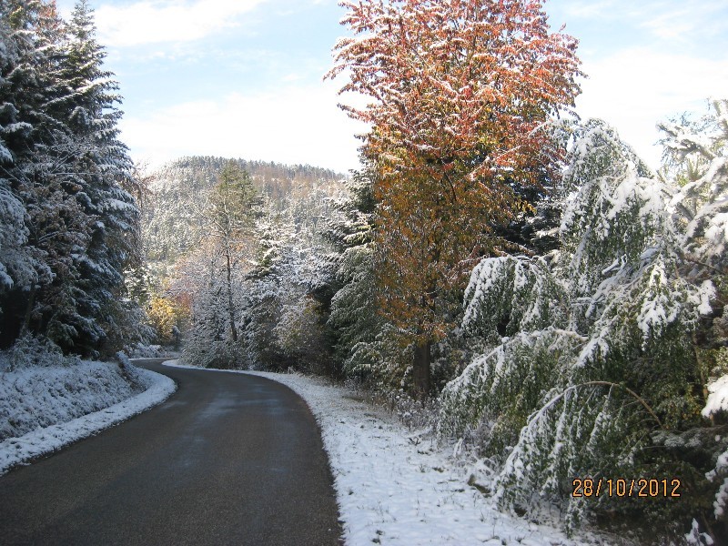 5) La neige sur les feuilles, lieu Carrefour Obersteigen (500m d'altitude) le 28/10/12 à 09h00 auteur Vendredi