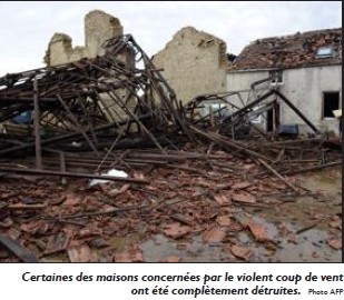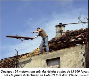 Par ailleurs, dans le val de Saône, les pompiers de Côte-d’Or ont effectué plusieurs interventions pour des inondations et des arbres tombés sur la route. Selon Météo-France, le front orageux qui a causé une tornade en Côte-d’Or est remonté mercredi soir sur la Haute-Marne, provoquant vers 18 h 30 des vents pouvant atteindre ponctuellement 160 km/h, à l’ouest de Chaumont, avant de s’affaisser.