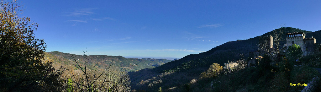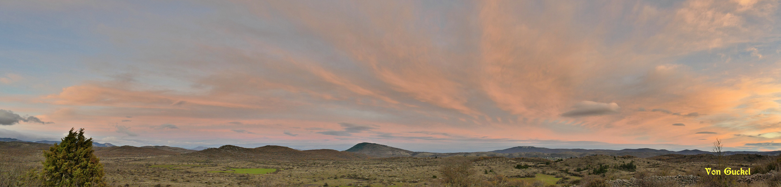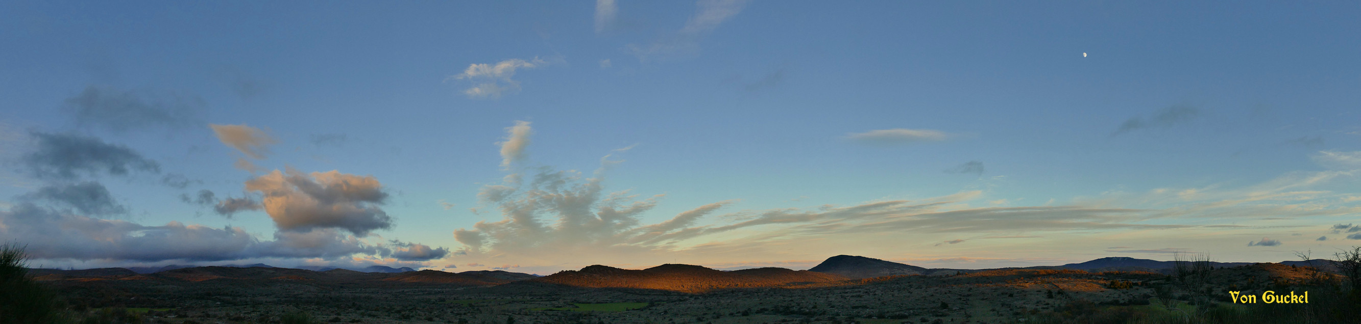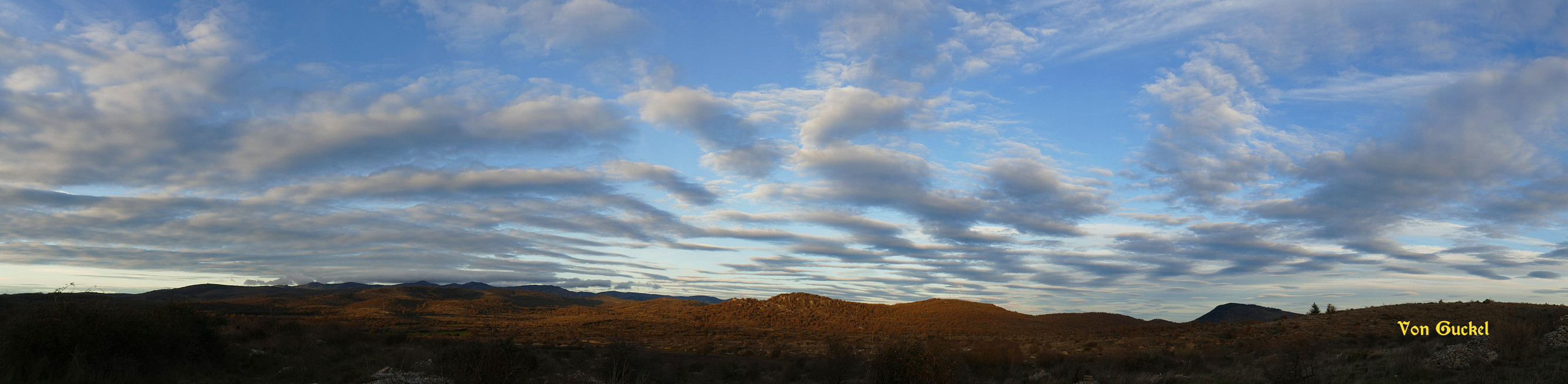 Vue vers le massif de l'Aigoual Soleil, qqs cirrus le soir. *** Tn: 1.1°C et Tx: 8.2°C *** Vm: 18.4 km/h et Vx: 83 km/h du n-o.par vonguckel